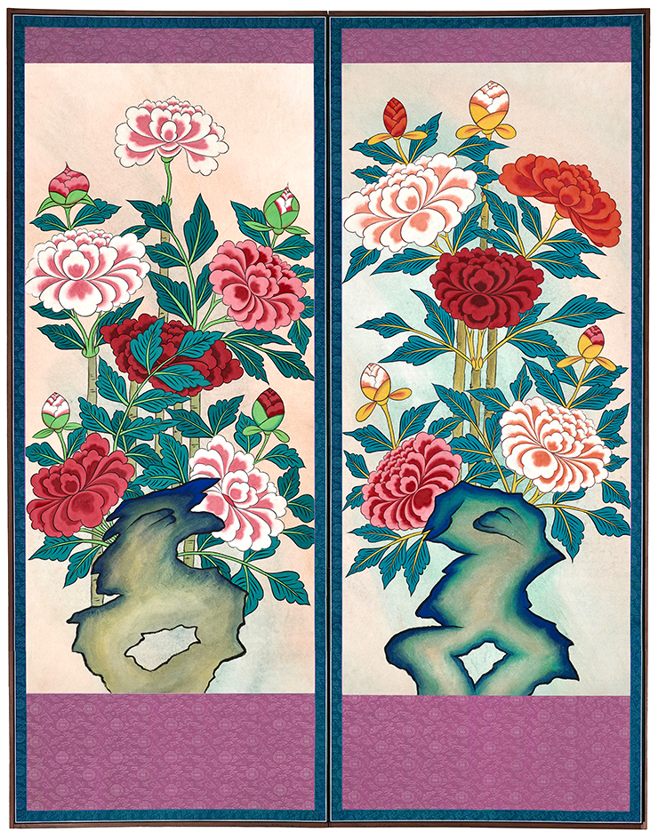 Moran Series are Joseon Dynasty Folk Art reproduced in reinterpreted colors. Paper dyed and painted in the traditional way with crafted pigments.