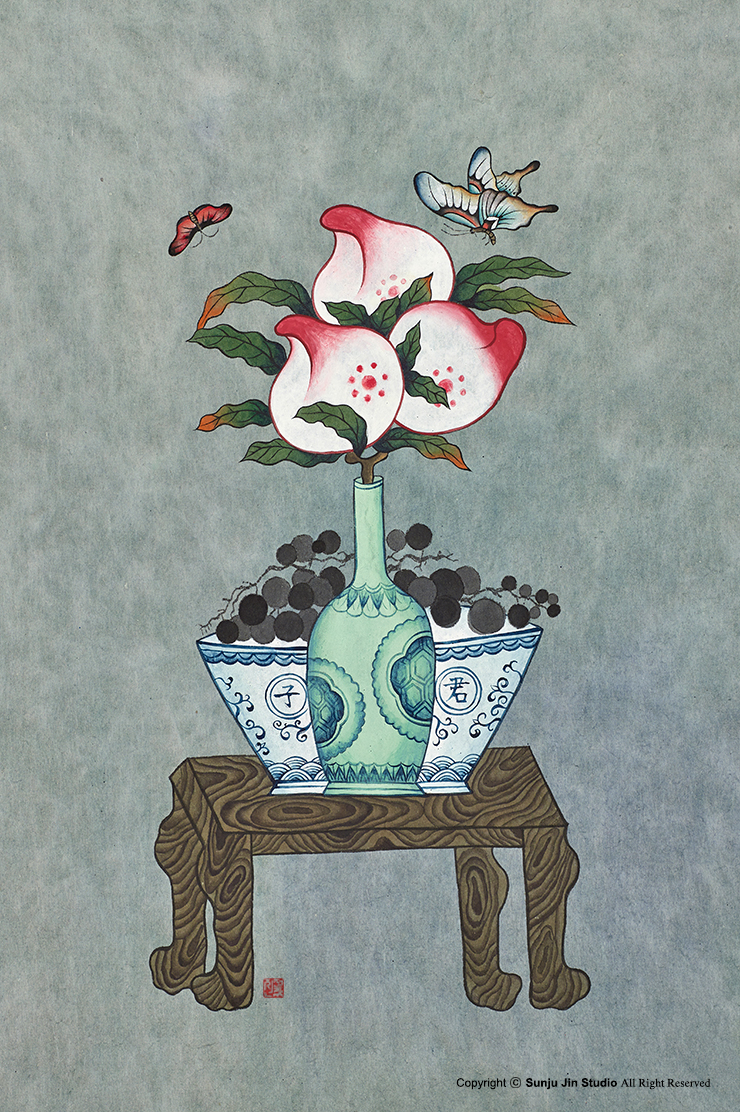 Still life Minhwa, 26 x 40 cm, Color on Korean Paper