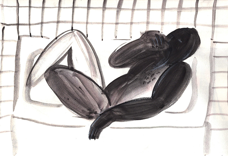 목욕하는 사람_Bath, 67 x 120cm, Ink and Paris white on Korean Paper, 2020